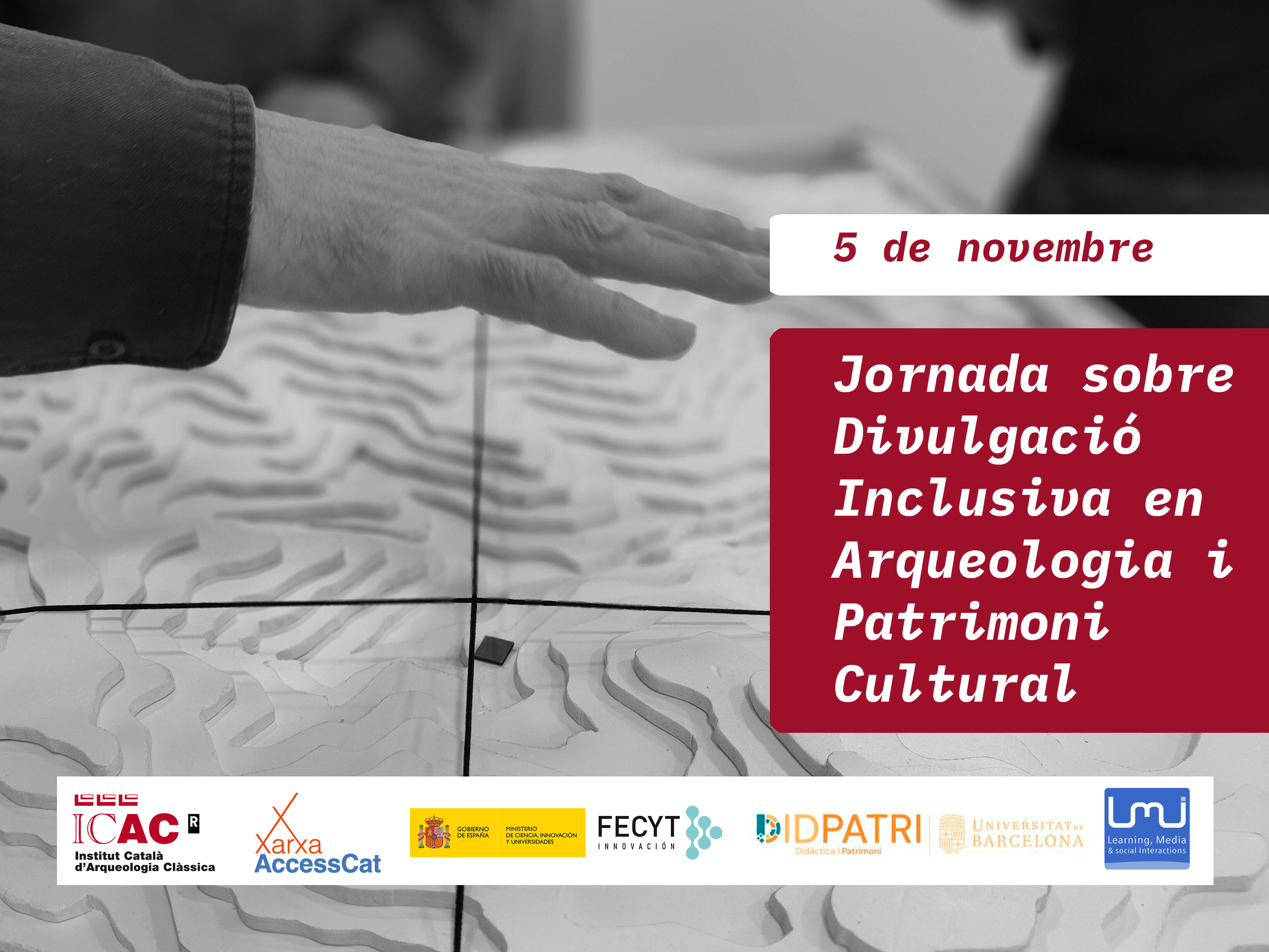 El dimecres 5 de novembre de 10.00 a 14.00 h tindrà lloc a l’ICAC la Jornada sobre Divulgació Inclusiva en Arqueologia i Patrimoni Cultural organitzada des de la Unitat de Transferència i Impacte Social (UTIS).