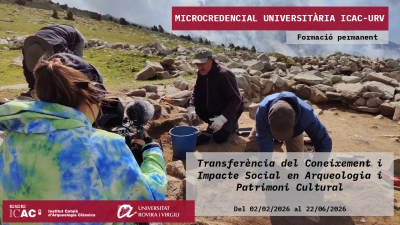 L’Institut Català d’Arqueologia Clàssica (ICAC), en col·laboració amb la Fundació Universitat Rovira i Virgili, presenta una formació pionera, en format de microcredencial, dedicada íntegrament als processos de transferència del coneixement i impacte social en l’àmbit de l’arqueologia i el patrimoni cultural.